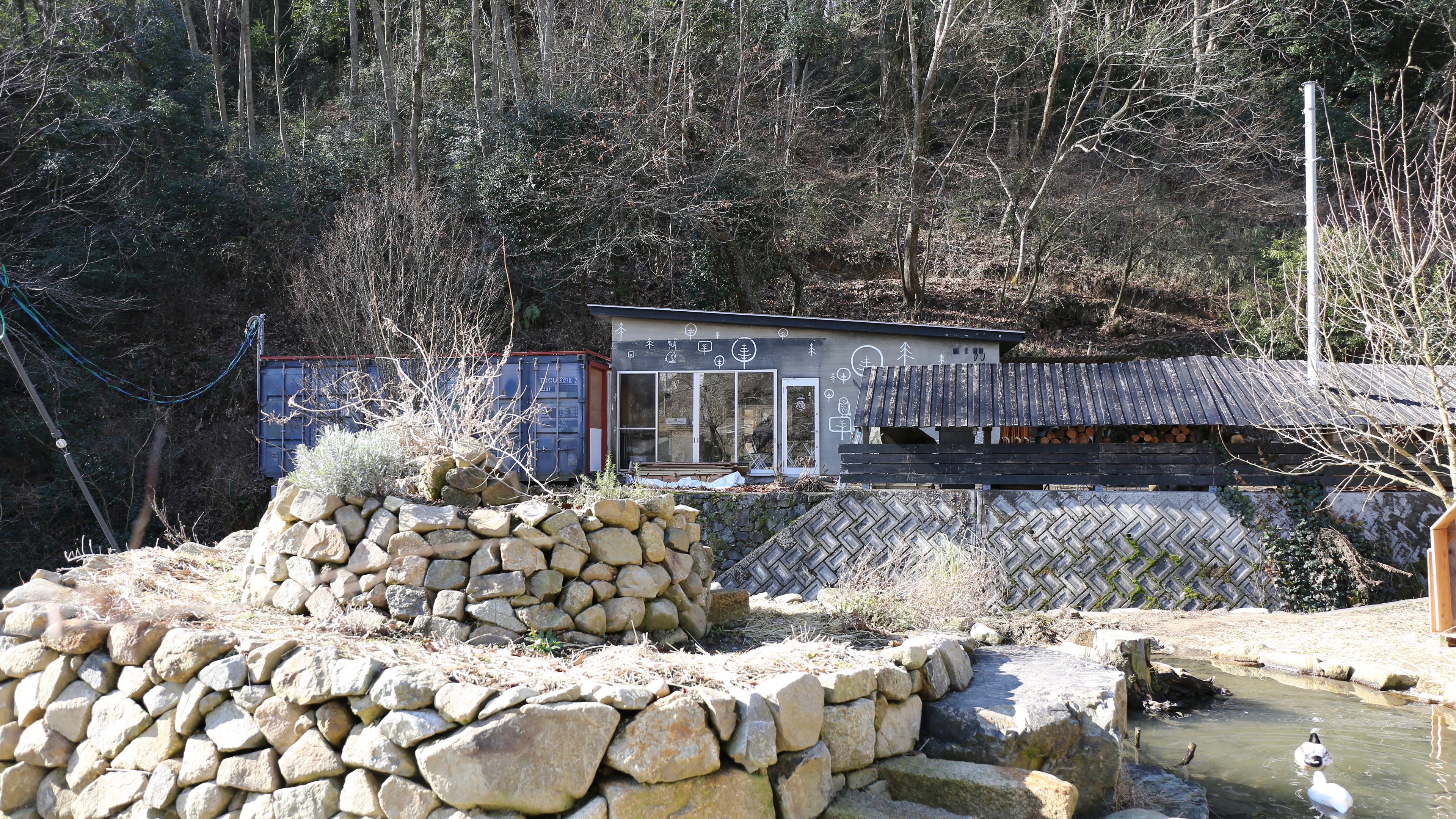 山の斜面に突き刺ささるように置かれた3つの海上コンテナ。大海原に浮かぶ船のように、荒れた天候の中でもキッチンをしっかりと守ってくれる建物となりました。閉ざされたキッチンの中では、お菓子づくりやパンづくり、ジャムを炊いたり、果物を絞ったり。ジュースやドレッシング、マスタードまで、農家さんや食品に携わる方々に広く活用して頂くために4種類の食品製造業の許可を取得し、運営しています。